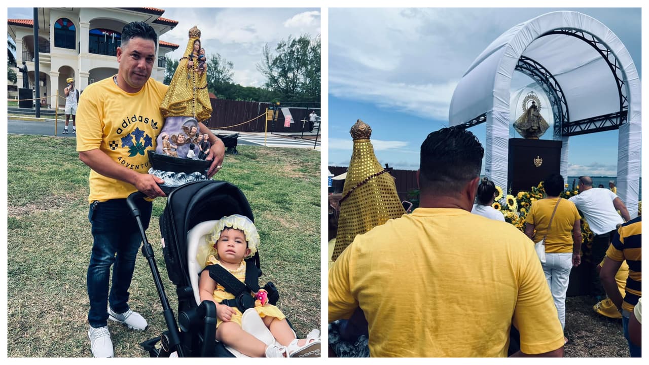 Cubano paga promesa a la Virgen de la Caridad del Cobre en Miami por su hija menor de un año