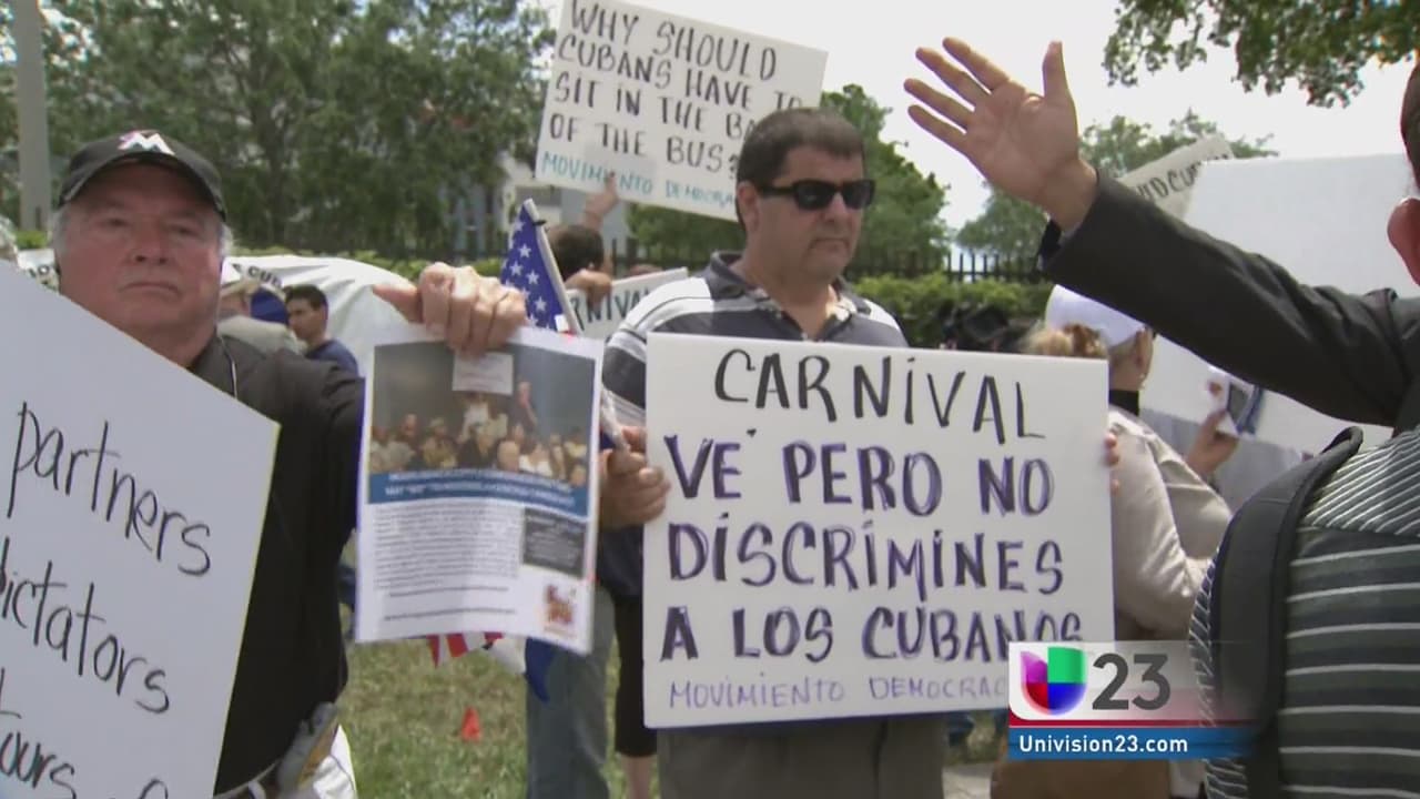Mientras se presentaba esta demanda en un tribunal federal de Miami, un grupo de cubanos protestaron frente a las oficinas de Carnival, en la ciudad de Doral, reclamando que estaban siendo 'discriminados' por la compañía al no dejarlos viajar a Cuba.