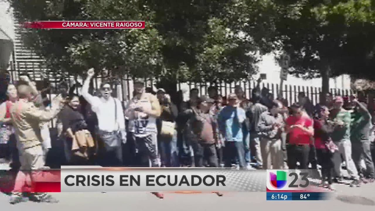 Cientos de Cubanos protestaron ante la embajada de EEUU en Ecuador para pedir que México les otorgue visas humanitarias que les permitan llegar al país.