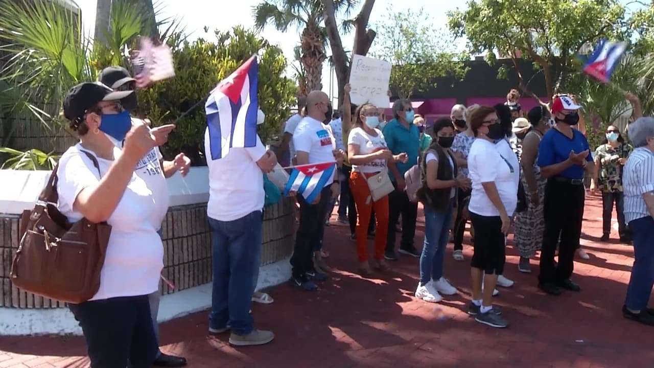 Cubanos residentes de Miami protestaron para pedir al presidente Joe Biden la reapertura de la embajada en Cuba y el procesamiento de los trámites de reunificación familiar. Desde el 2017 las solicitudes se detuvieron luego de los ataques sónicos en la sede diplomática de La Habana.