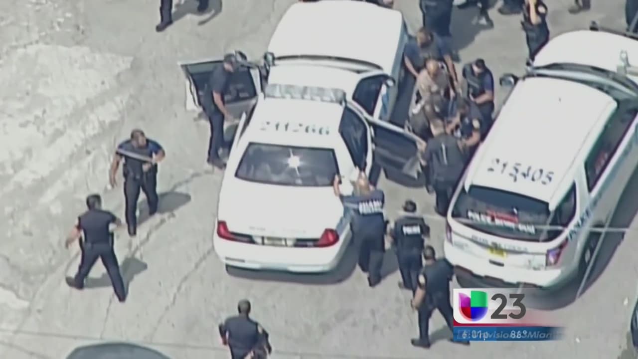 El sospechoso fue puesto bajo arresto en la avenida 11 y la calle 119 del noroeste del Condado. Este fue rodeado por la policía quienes inmediatamente se dirigieron hacia el auto pistola en mano.