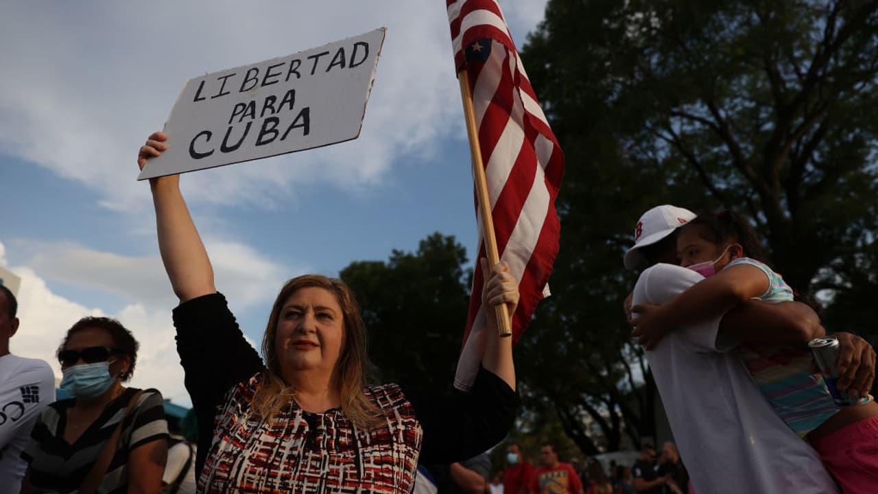 Decenas de cubanos se toman una intersección en Miami para manifestar su apoyo al pueblo en la isla