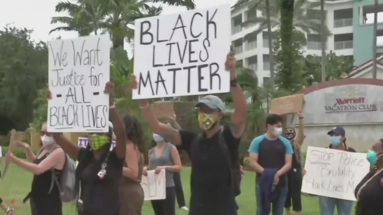 Decenas de manifestantes se reúnen a las afueras del club de golf de Trump en Doral y exigen que pare el racismo