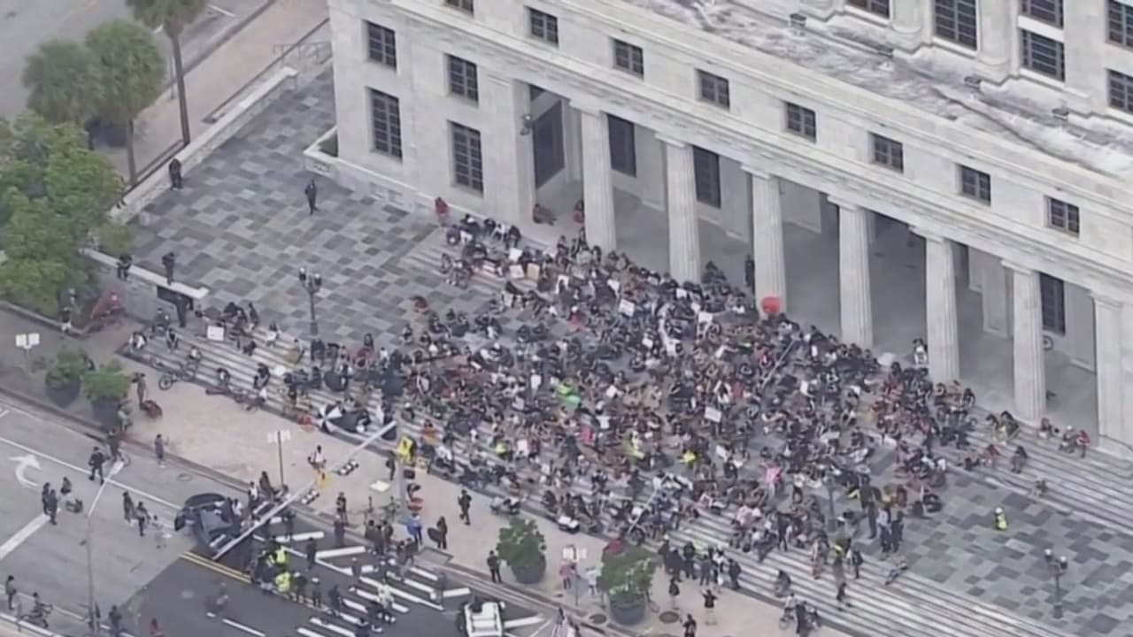Este viernes, cerca de 400 manifestantes se reunieron a las 3:00 pm en el monumento de la Antorcha de la Amistad y luego salieron a recorrer varias calles de la ciudad. Aunque intentaron llegar hasta las oficinas del Departamento de la Policía de Miami, los agentes bloquearon su paso, por lo que cambiaron su ruta hacia Brickell.