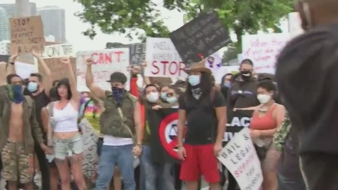 La protesta tiene como fin pedir justicia por la muerte de George Floyd y de otras víctimas a manos de la policía. Se espera que este fin de semana se presenten más manifestaciones en el sur de Florida.