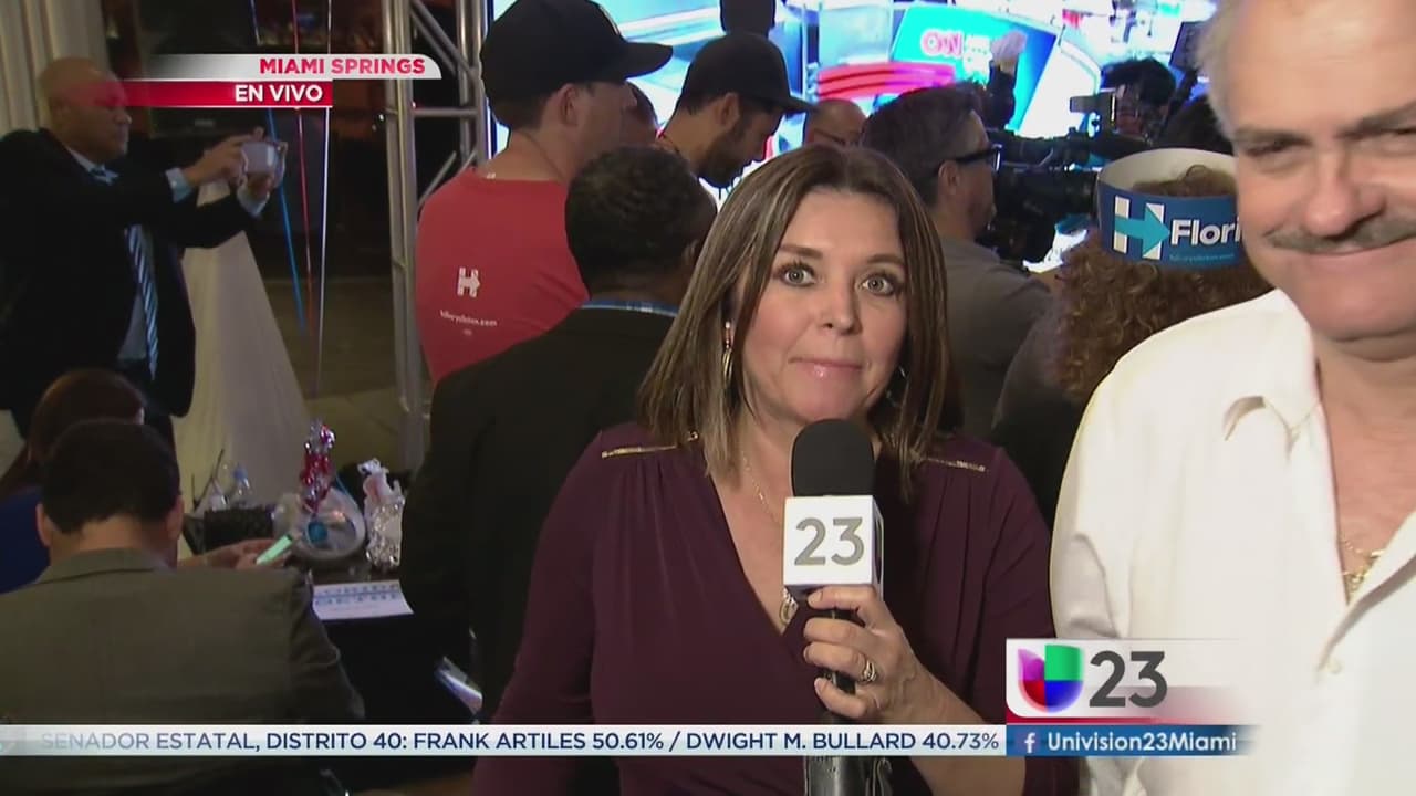 Decenas de miembros del partido demócrata en Florida se reunieron en la sede del partido en Miami Springs para seguir minuto a minuto los resultados de las elecciones presidenciales.