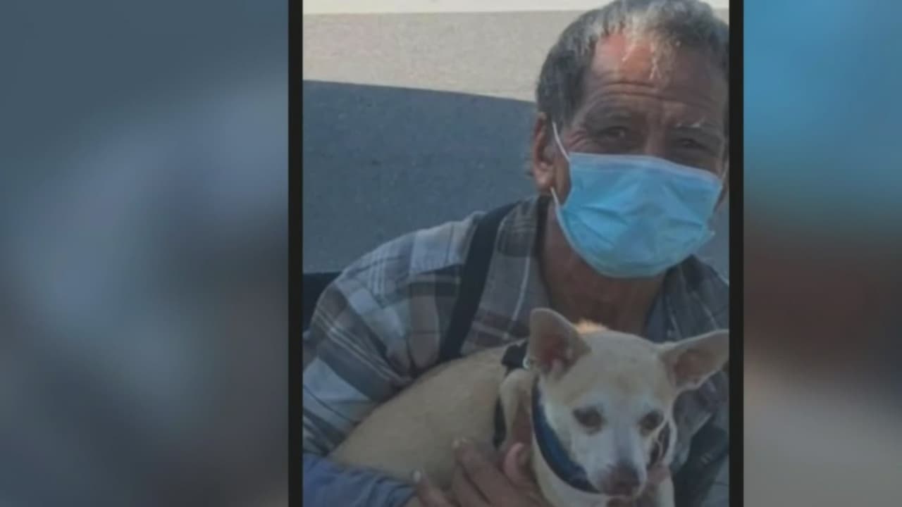 A Pedro Dimas Carrión, quien vive en la calle, le regalaron a su mascota Sky hace cinco años y asegura que el lunes pasado alguien se lo llevó en una camioneta. Personas que conocen al hombre dicen que él lo cuidaba muy bien y que es "todo en su vida".