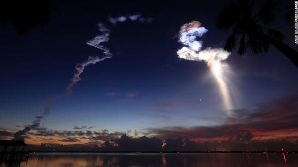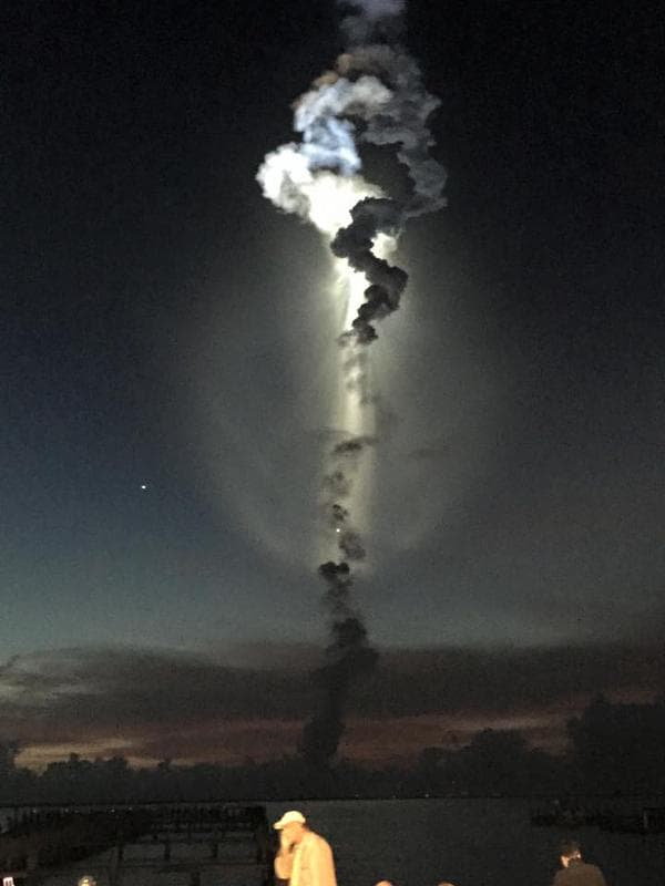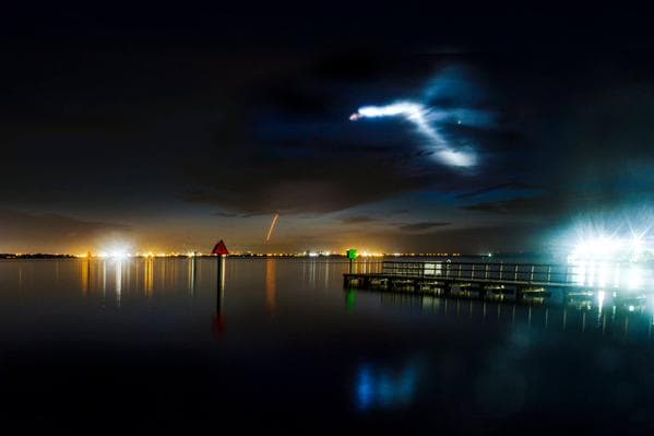 La luz que permitió esas fotos tan impresionantes fue creada por los motores del cohete, los que emitieron 2.5 millones de libras en empuje para poder elevarlo.
