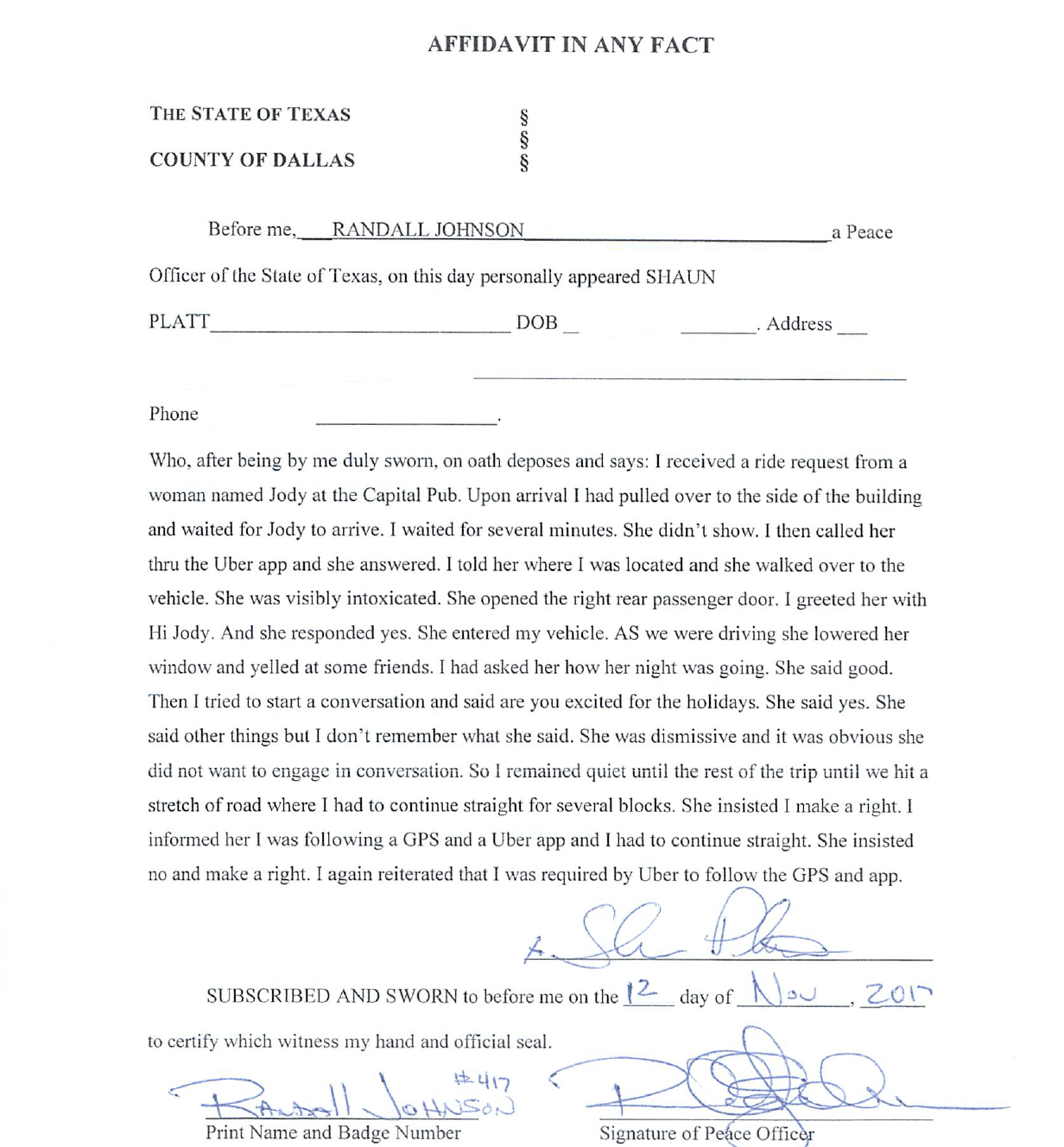 A Jody Warner no le importaron las palabras de Platt y, de acuerdo con la grabación, le dijo: “Eres tan estúpido. Quiero que los policías vengan para que puedan joderte”, "eres retardado" y otros insultos. También le dijo "soy una fiscal asistente así es que cállate... Creo que esto puede calificar como un secuestro".