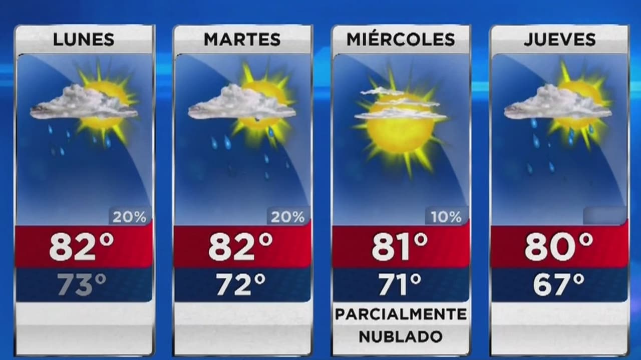 Aunque es casi nula la posibilidad de lluvia, hay que estar preparado por si se presentan algunas lloviznas leves. La temperatura máxima será de 82 grados y el cielo se mantendrá despejado. En la noche se registrarán 73 grados.