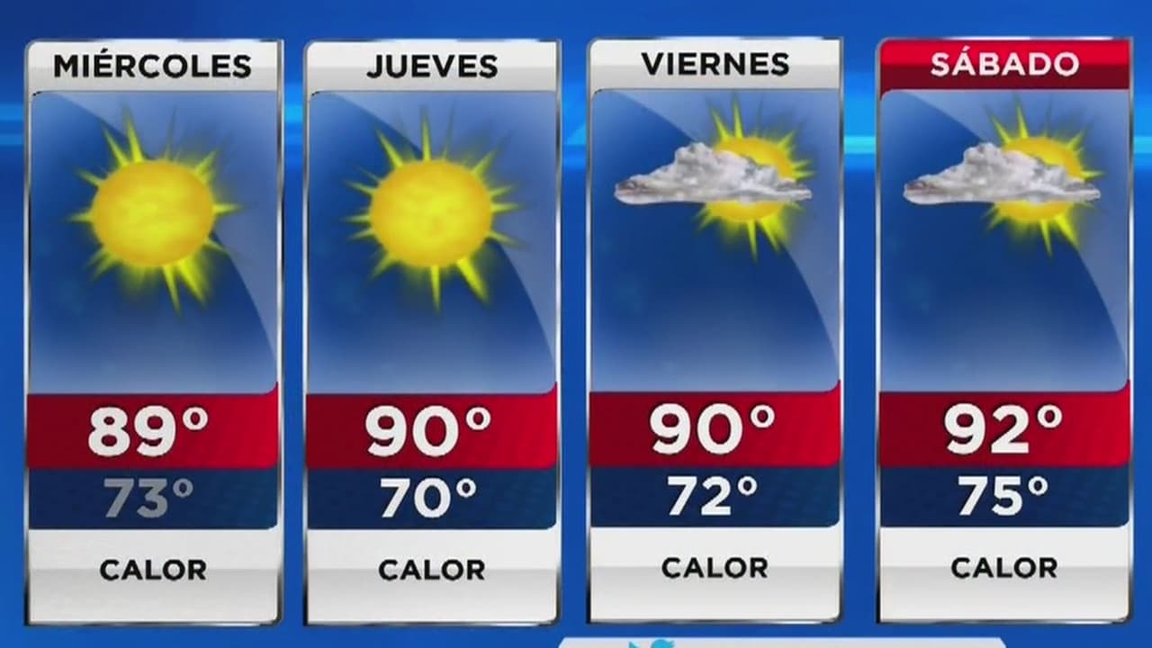 Sigue subiendo la temperatura en el área, con una máxima para hoy de 89 grado y con tendencia al ascenso hasta sábado. La mínima este miércoles será de 73 grados. Las condiciones son apropiadas para actividades al aire libre.