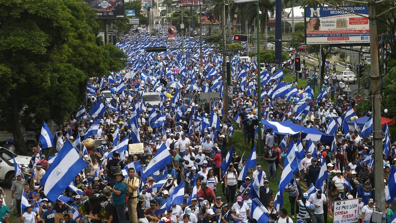 Disparan contra manifestantes durante la Marcha de las Flores contra el régimen de Ortega en Nicaragua