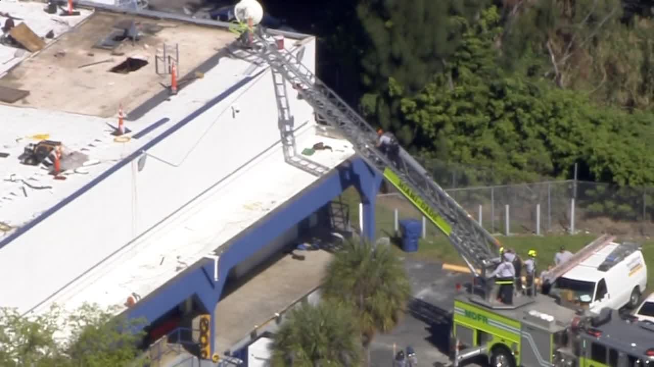 La policía de la ciudad trabaja en el 9600 de la calle 13 del noroeste, en donde dos trabajadores fueron víctimas del accidente al caer parte de la estructura del local. Los hombres fueron transportados al Hospital Jackson Memorial y se desconoce su estado de salud.