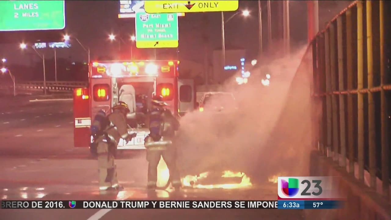 Un auto Murano se estrelló contra el muro de concreto de la autopista ocasionando que este estallara en llamas.