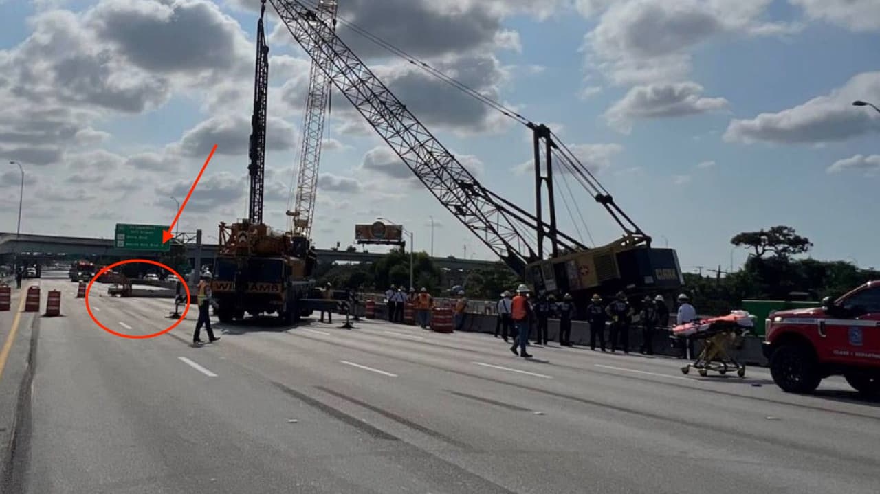 Dos trabajadores resultan heridos al caer a 30 pies de un camión de cubo en la I-95