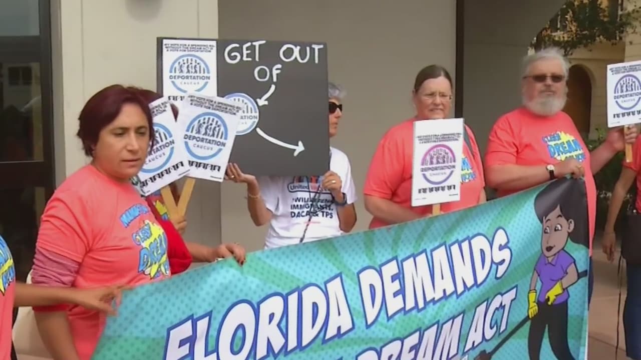 Alumnas de la FIU formaron parte de un grupo que llegó hasta Coral Gables para pedirle al congresista que vote en contra de cualquier presupuesto que no incluya una legislación para prevenir la deportación de los jóvenes que se benefician de DACA.