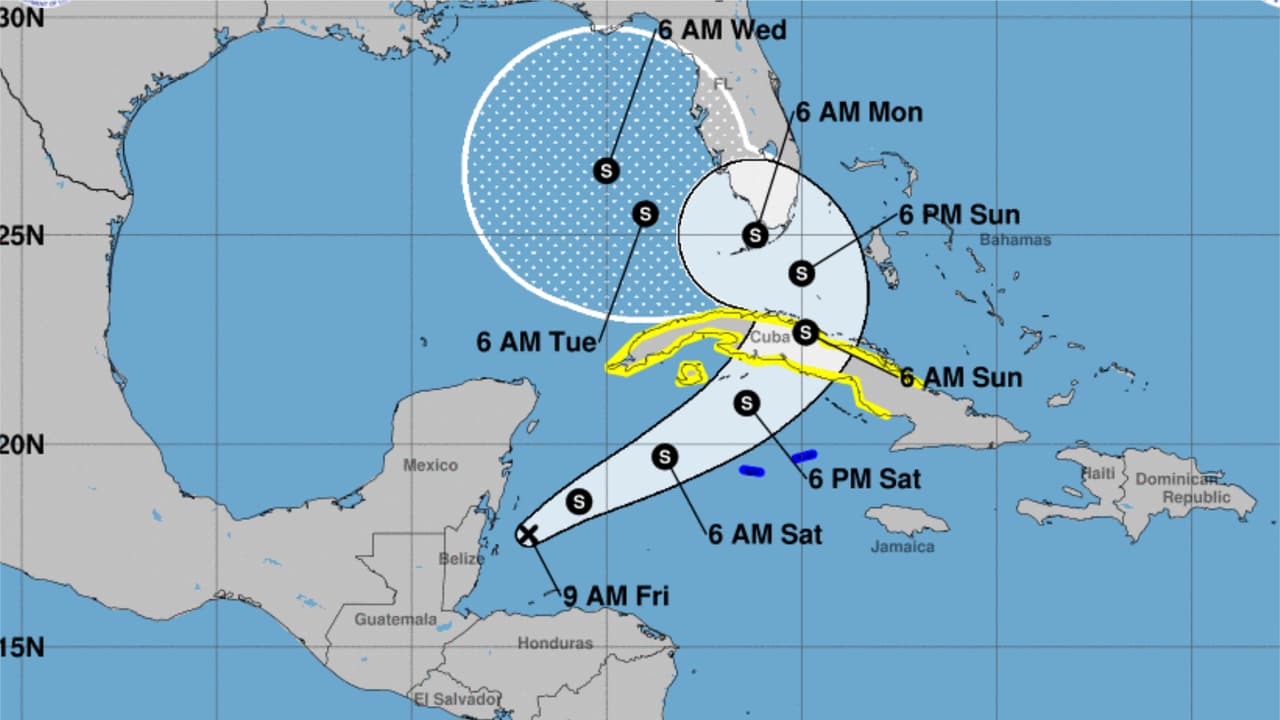 El sistema avanza por el Caribe con vientos de hasta 35 millas por hora. Se espera que el fenómeno se convierta nuevamente en tormenta tropical en las próximas horas, que toque tierra en Cuba el domingo temprano y que ese mismo día llegue a los Cayos.