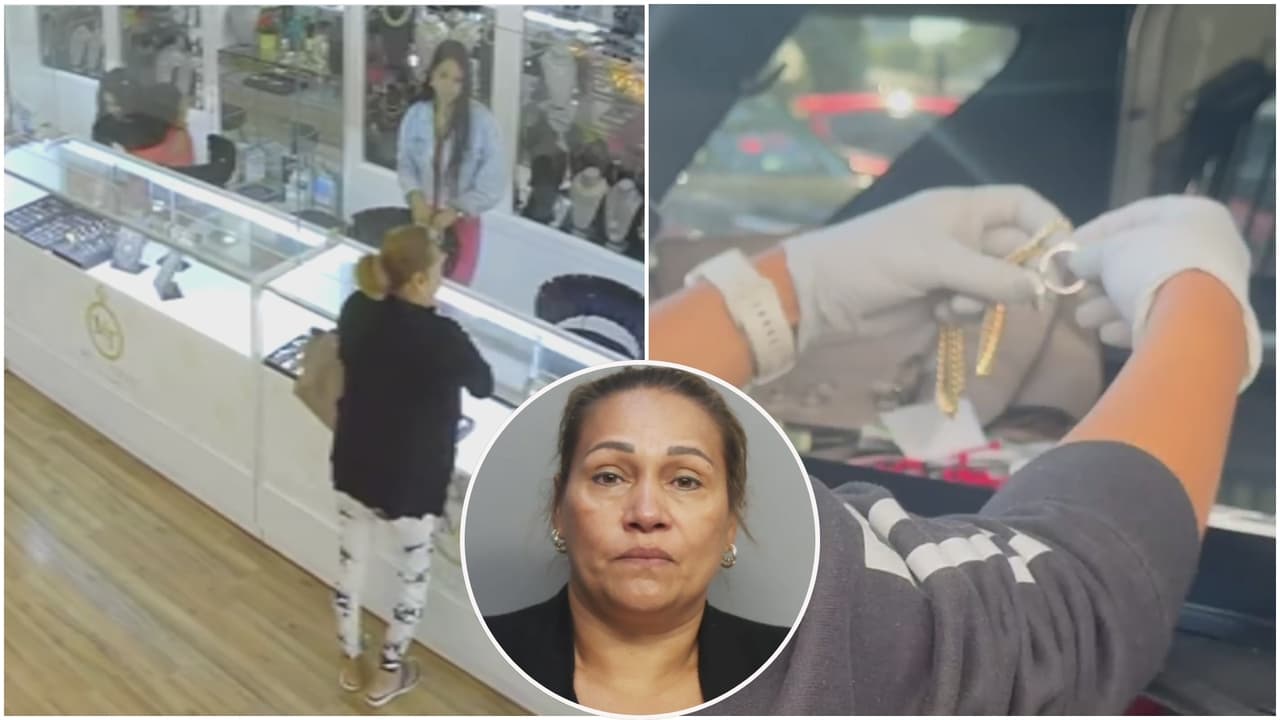 Unas jóvenes trabajadoras de la joyería Mio & Tuyo jugaron un papel clave para que la policía lograra arrestar a una mujer que estaba siendo denunciada por las redes sociales de robar en joyerías de Miami. Según el reporte, mientras a la sospechosa la atendían como supuesta clienta, una de las empleadas llamó a las autoridades. La señalada fue registrada y le fueron encontradas varias cadenas y otras prendas de oro en su cartera.