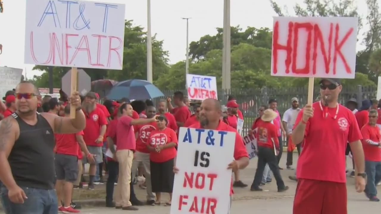 Empleados de AT&T, en Miami, alzan sus voces para exigir mejoras laborales