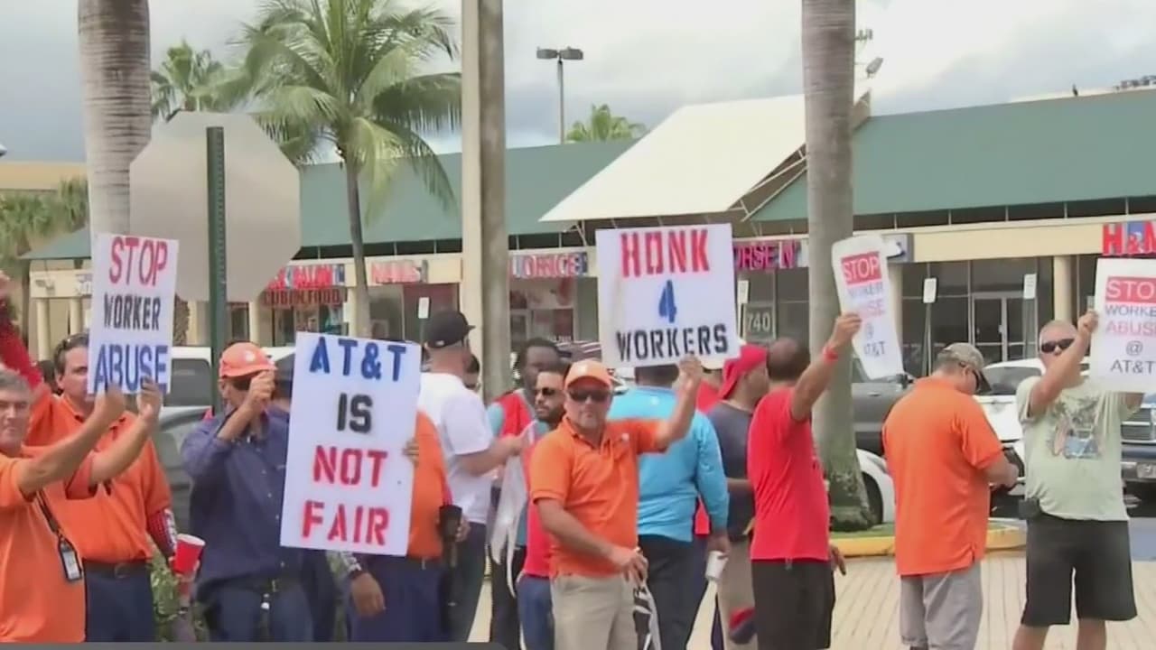 Empleados de AT&T se manifiestan en diferentes puntos del sur de Florida exigiendo mejores condiciones laborales
