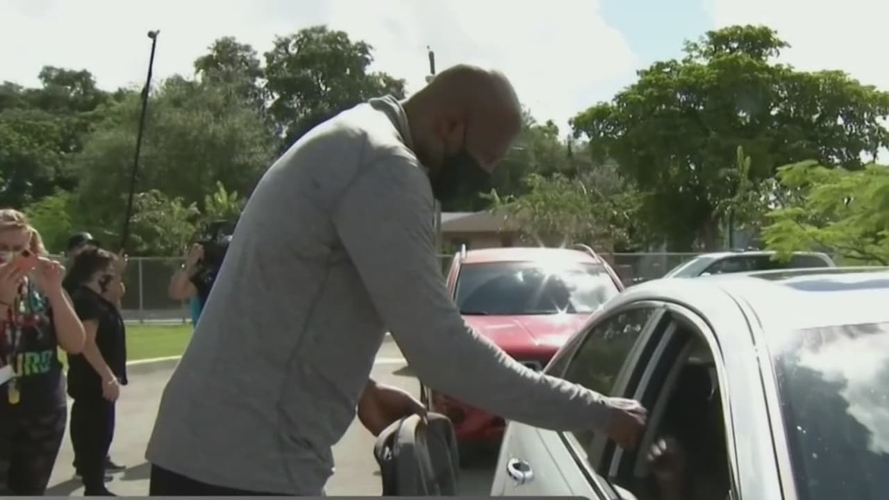 El legendario jugador Alonzo Mourning y representantes del Distrito Escolar de Miami-Dade repartieron estos dispositivos a alumnos de bajos recursos para que puedan asistir a las clases virtuales. Unas 25 familias se vieron beneficiadas con esta iniciativa.