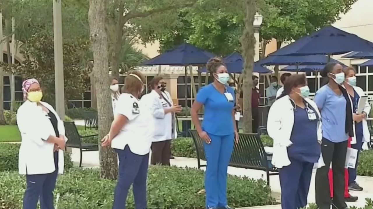 Médicos y enfermeras del Memorial Hospital, en Miramar, hicieron un alto en sus actividades diarias para participar en una emotiva vigilia en la que pidieron por más unión, paz y solidaridad en todas las comunidades. Además, hicieron un pequeño homenaje a George Floyd.