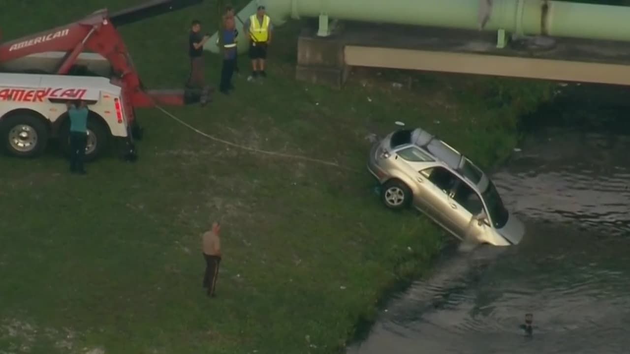 Una mujer sobrevive luego de que su auto cayera a la profundidad de un canal en Miami Gardens