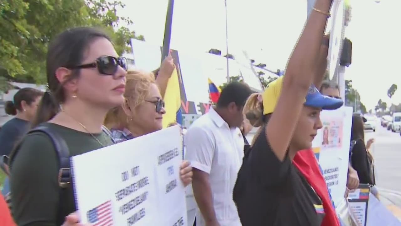 El grupo de manifestantes se reunió en Doral para denunciar que más de 300 venezolanos están privados de su libertad y que supuestamente se les está vulnerando sus derechos humanos.