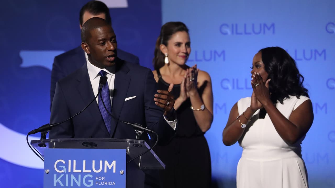 El demócrata Andrew Gillum reconoce la victoria de Ron DeSantis en la gobernación de Florida