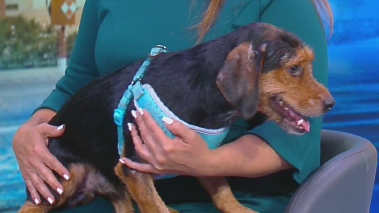 Él es Dino, uno de los 99 perritos rescatados que buscan hogar en el sur de Florida