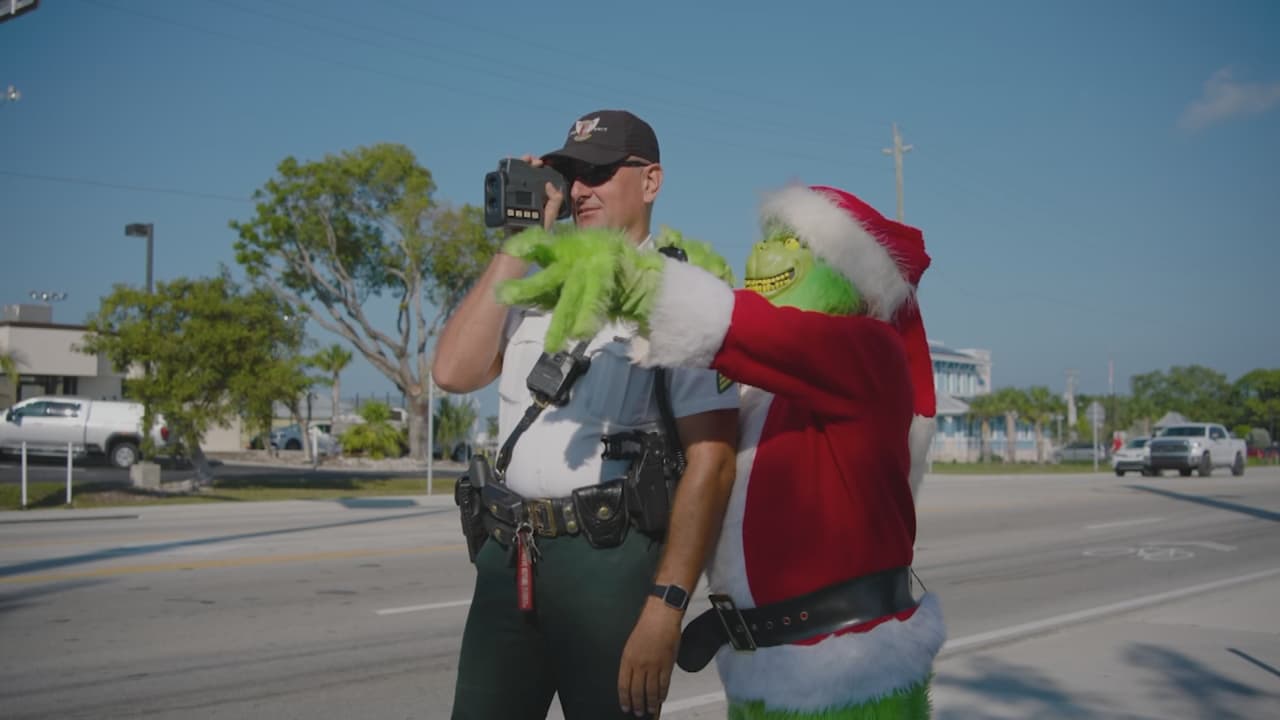 El “Grinch” sorprende con un obsequio a conductores que exceden el límite de velocidad en Los Cayos de Florida