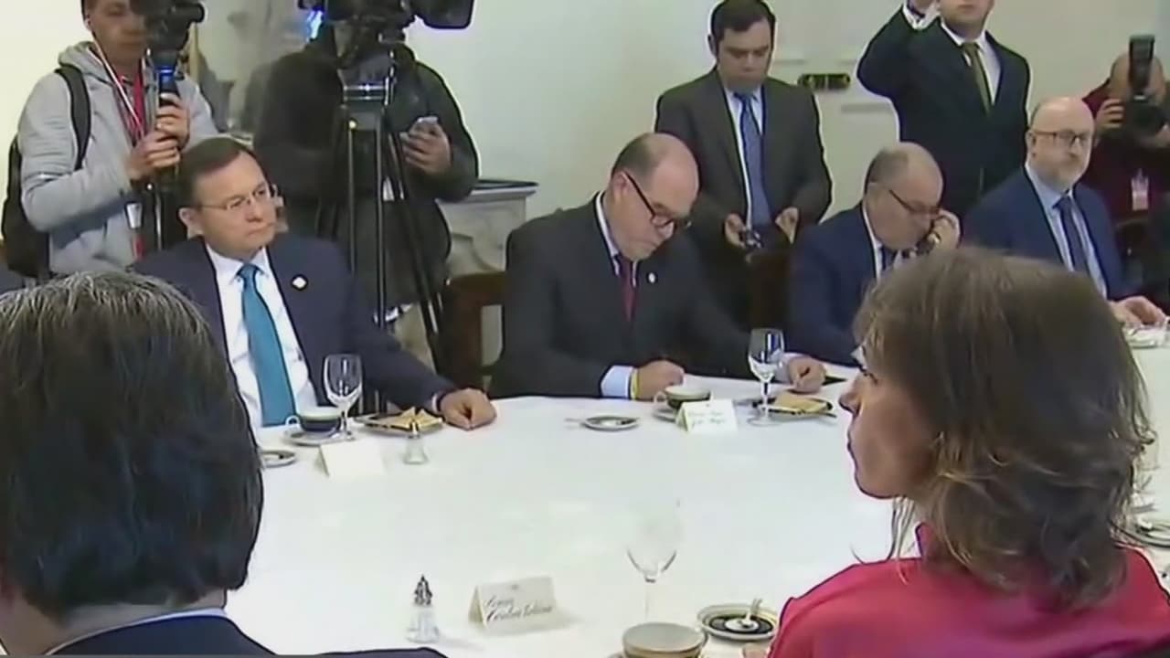 Los representantes sostuvieron un encuentro en Santiago de Chile con el fin de abordar soluciones a la situación política, económica y social que atraviesan los venezolanos. La reunión ocurrió un día después de que Maduro celebrara seis años en el poder y que Colombia y EEUU anunciaran cooperación internacional para ayudar con la crisis.