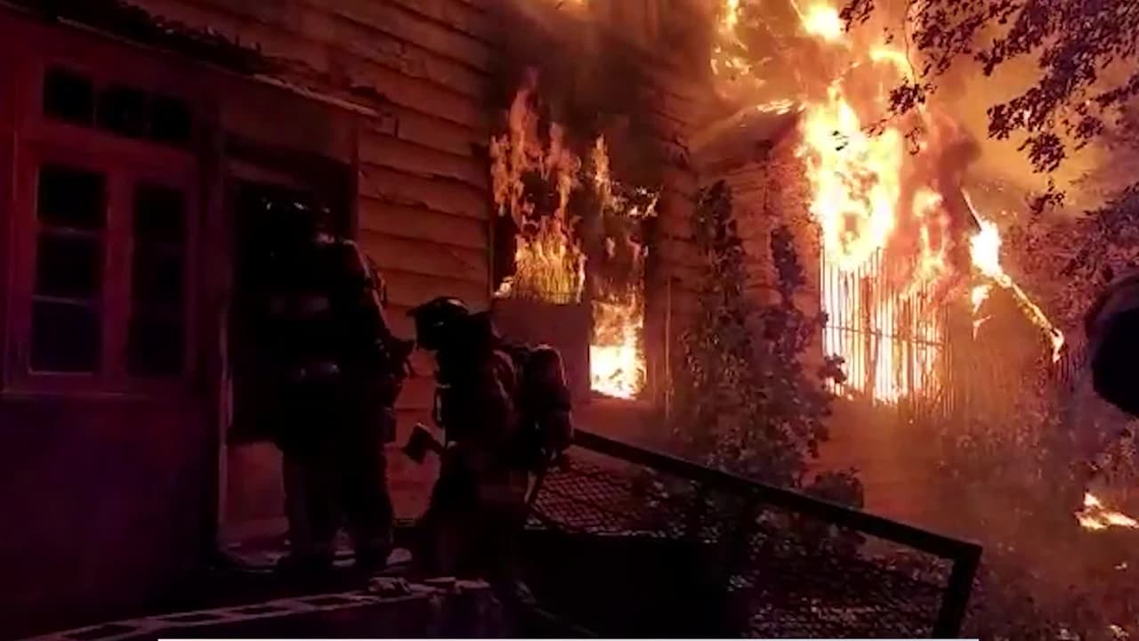 El momento en que bomberos combaten un incendio en el noroeste de Miami-Dade