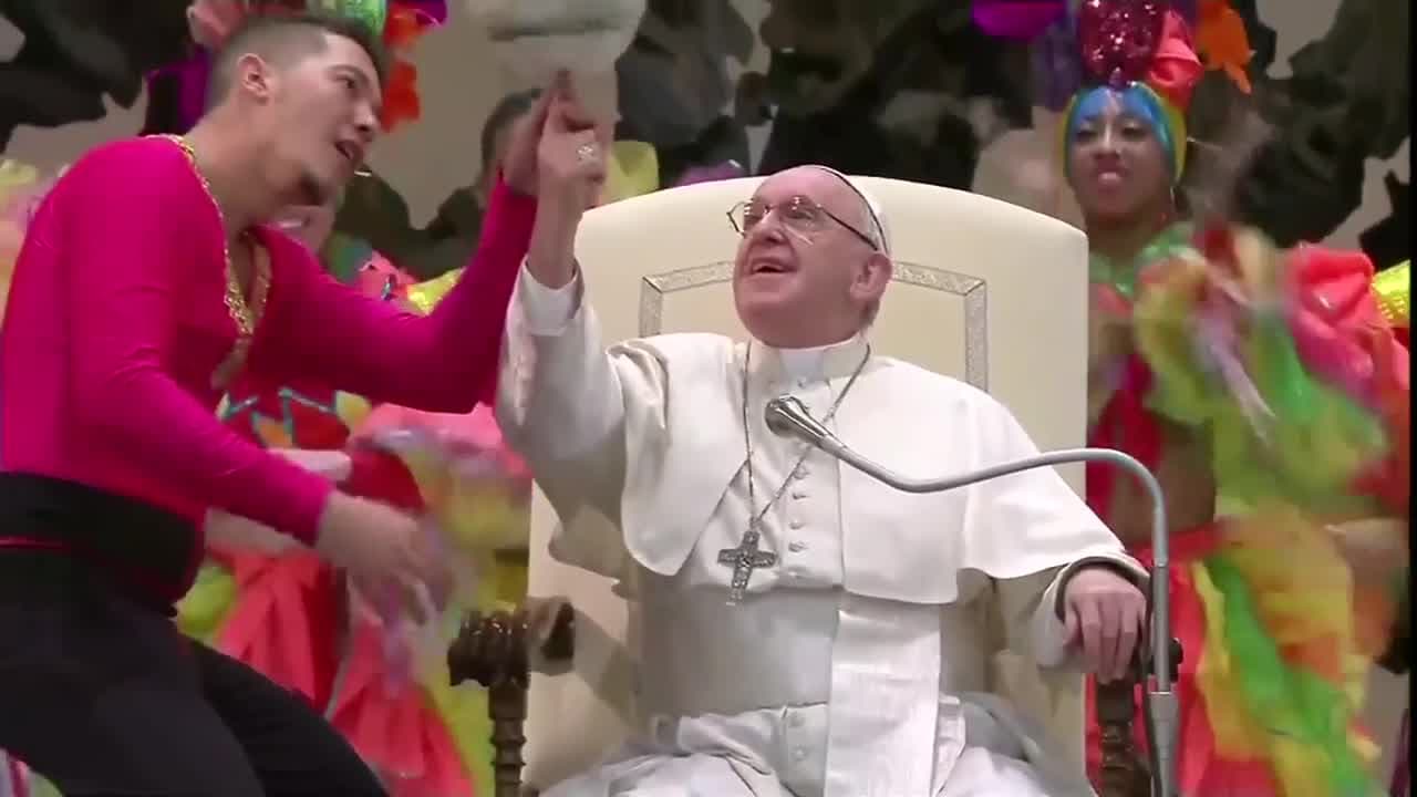 El espectáculo tuvo lugar en el auditorio Pablo VI del Vaticano, también ante los miles de fieles que asistieron a la audiencia, y contó con la participación de una veintena de artistas entre acróbatas y bailarinas ataviadas con coloridos vestidos.