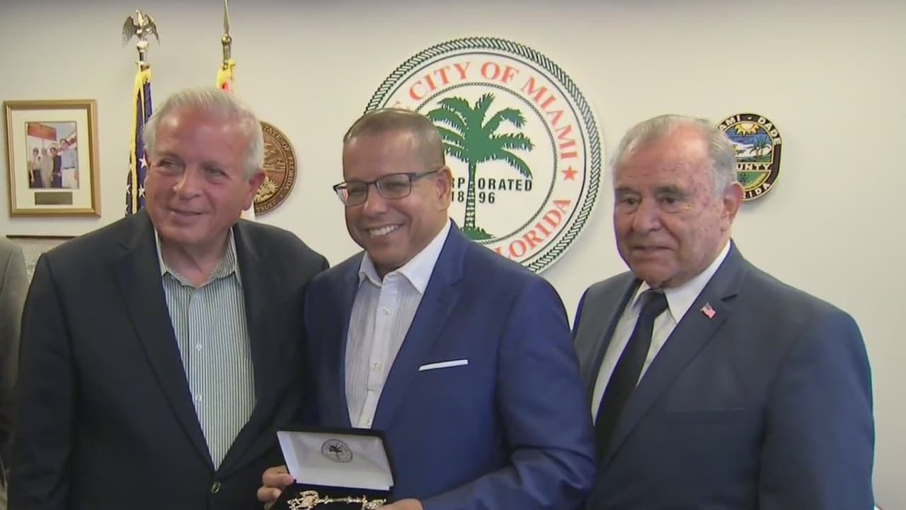 El periodista de Noticias 23 José Alfonso Almora recibe las llaves de Miami