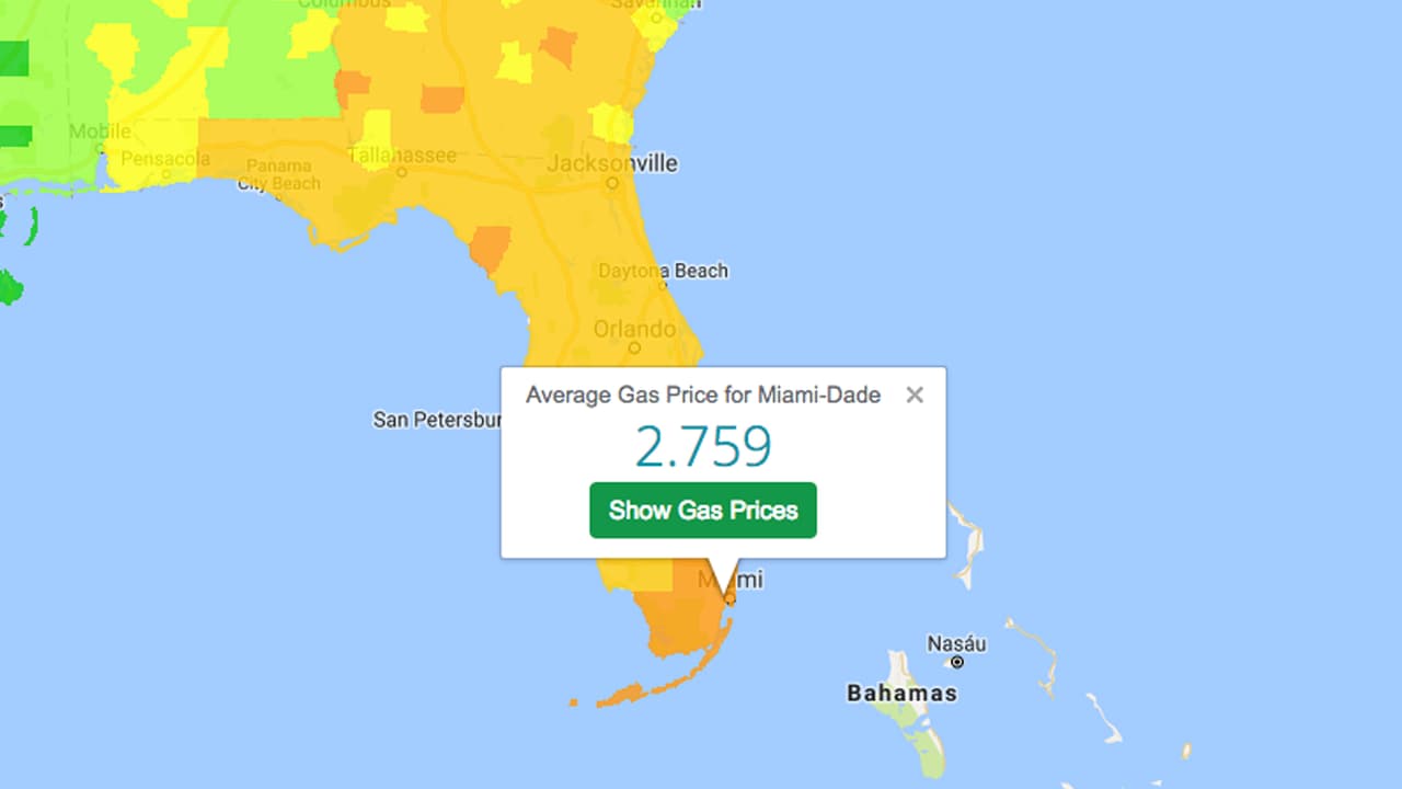 El promedio actual en el área de Miami es de alrededor de 2.75 dólares el galón, según información de GasBuddy.