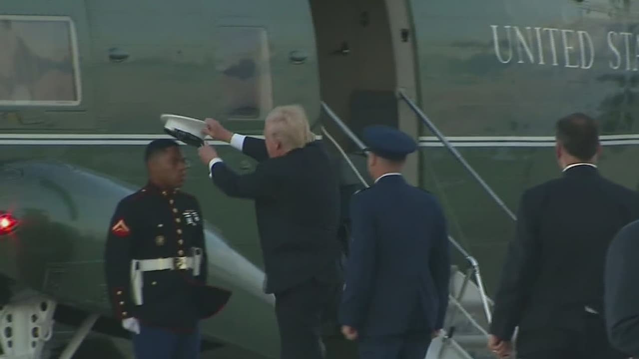 El presidente Donald Trump 'perdió' su lucha contra el viento en la Base Militar Andrews