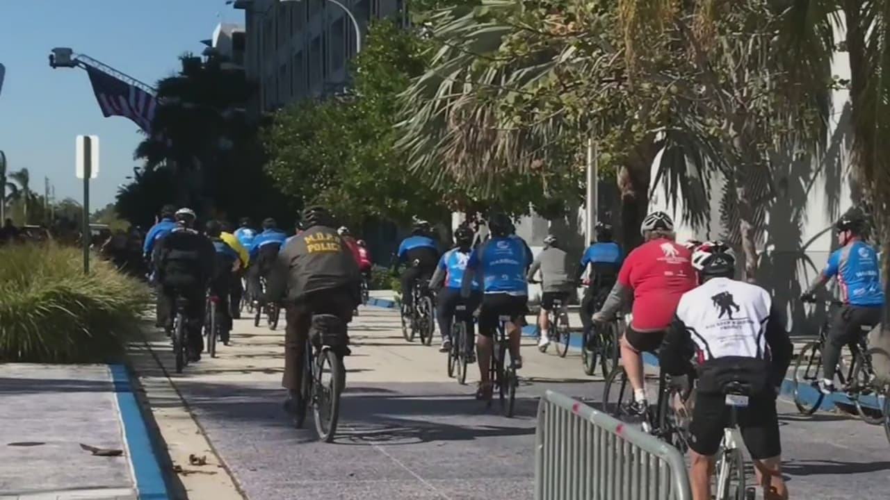 En la comitiva, organizada por Wounded Warrior Project, participan veteranos de guerra. Este jueves, el recorrido fue desde la playa hasta el coloso de la Pequeña Habana: Marlins Park.