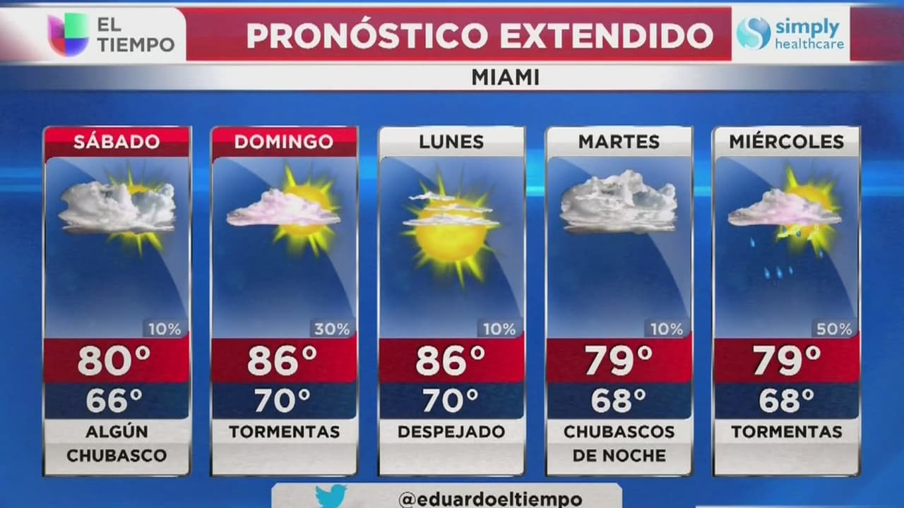 El Tiempo en Miami: posibilidad de chubascos y tormentas