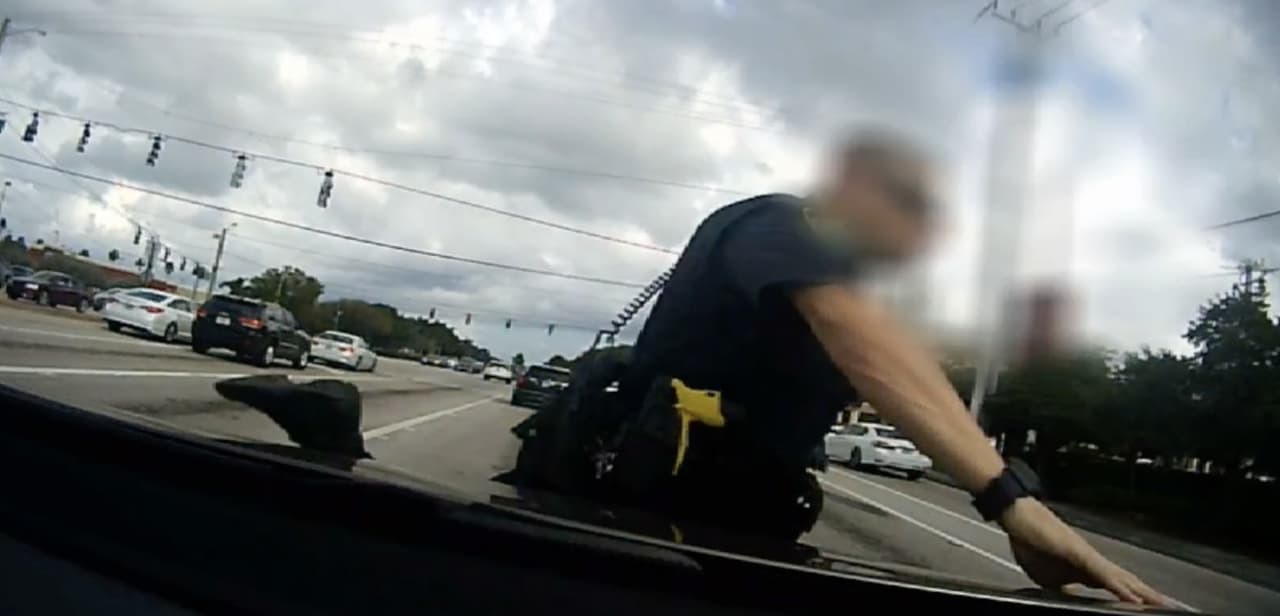 El video cuando un policía corre para perseguir un ladrón pero es golpeado por un auto en Boyton Beach
