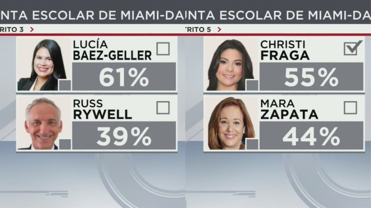 Los votantes eligieron a Lucía Baez-Geller, Christi Fraga y Luisa Santos para ocupar las sillas de la junta escolar en los distritos 3, 5 y 9. Miami-Dade tiene el cuarto distrito escolar más grande de todo Estados Unidos.