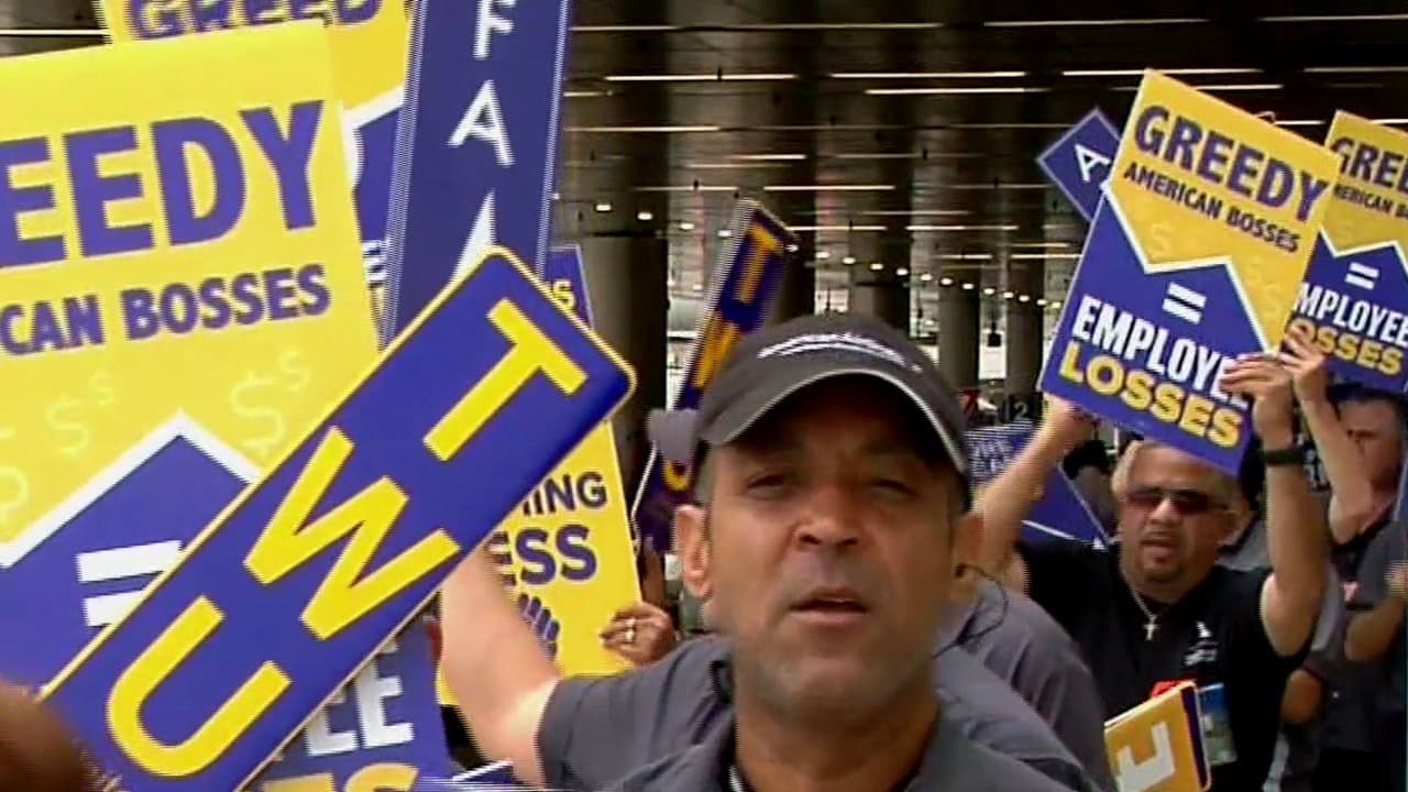 Empleados de sindicato de transporte protestan en American Airlines del Aeropuerto de Miami