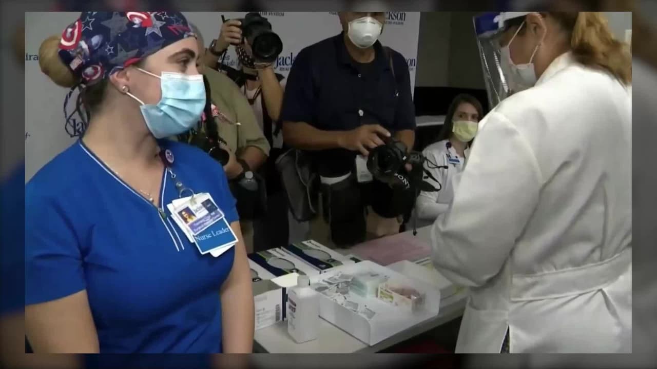 El hospital Jackson de Miami-Dade recibió 20,000 vacunas contra el coronavirus este martes, en donde médicos y enfermeras fueron los primeros en recibir la dosis de Pfizer. El resto de las personas deben seguir esperando para inmunizarse.