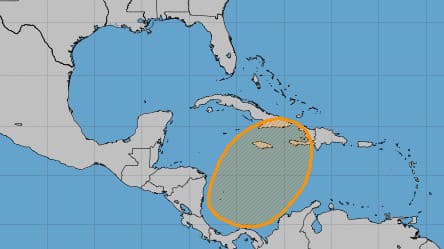 Una extensa zona de bajas presiones estará formándose en el Mar Caribe esta semana. El Centro Nacional de Huracanes monitorea el área ante la posibilidad de que pueda desarrollarse una depresión tropical al sur de Cuba.