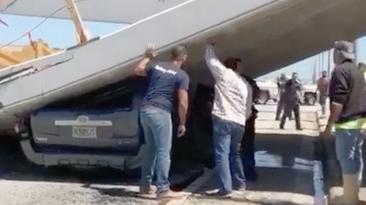 En esta camioneta atrapada por el puente de Miami viajaban Richard y Alexa: él escapó ileso, pero ella no salió