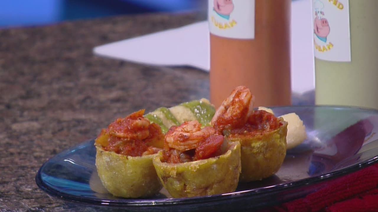 En video, aprenda a preparar tostones rellenos con camarones enchilados
