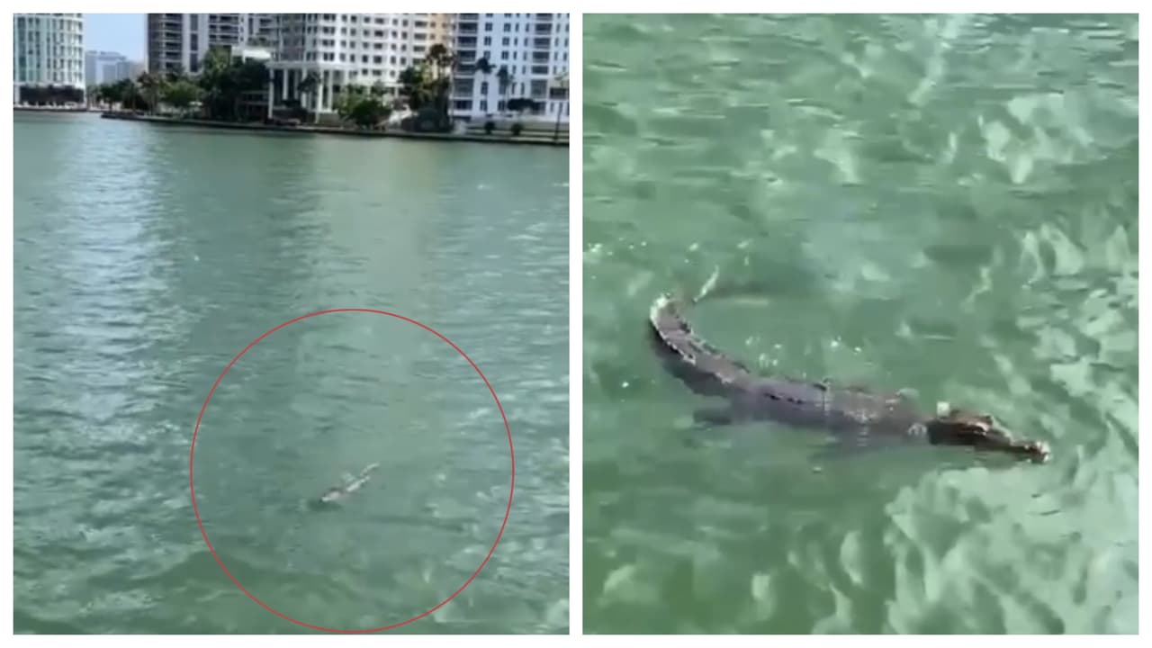 Un video captado por testigos muestra a un cocodrilo de tamaño considerable nadando por la bahía de Biscayne en un área del downtown de Miami. En las imágenes se pueden divisar al fondo los edificios de Brickell.