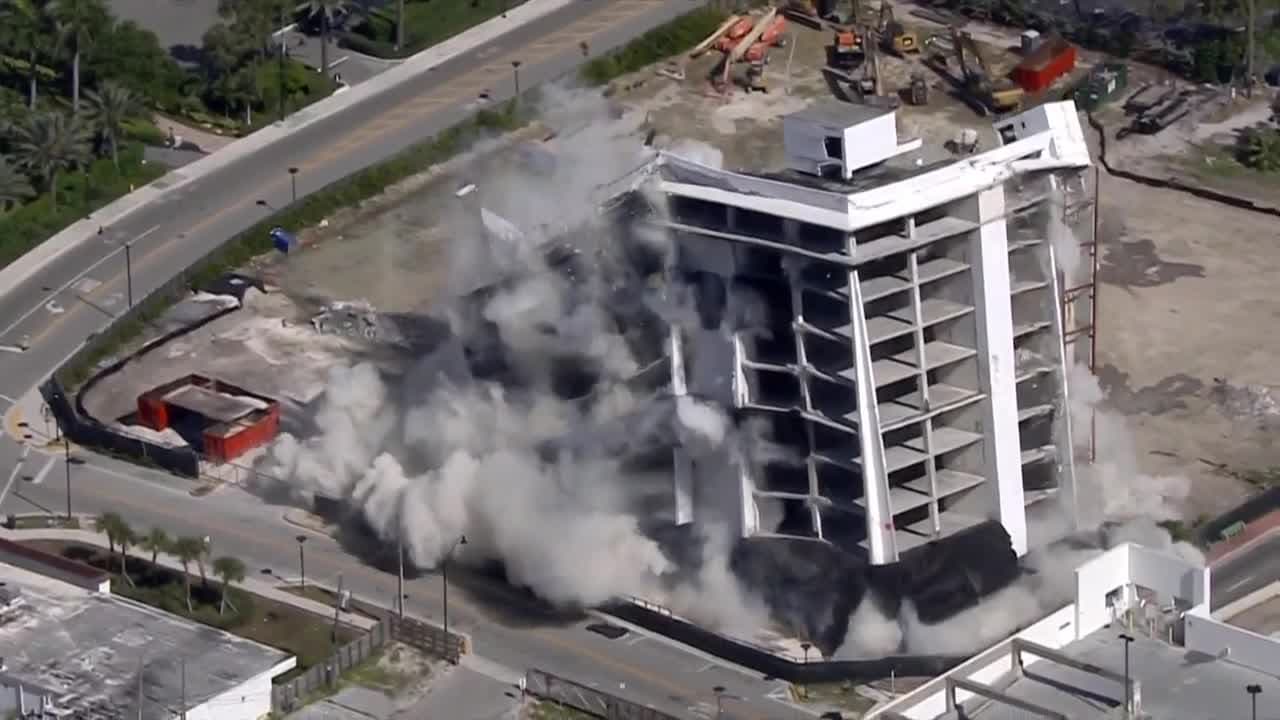 En video: el momento de la implosión de un viejo hospital en Miami Beach