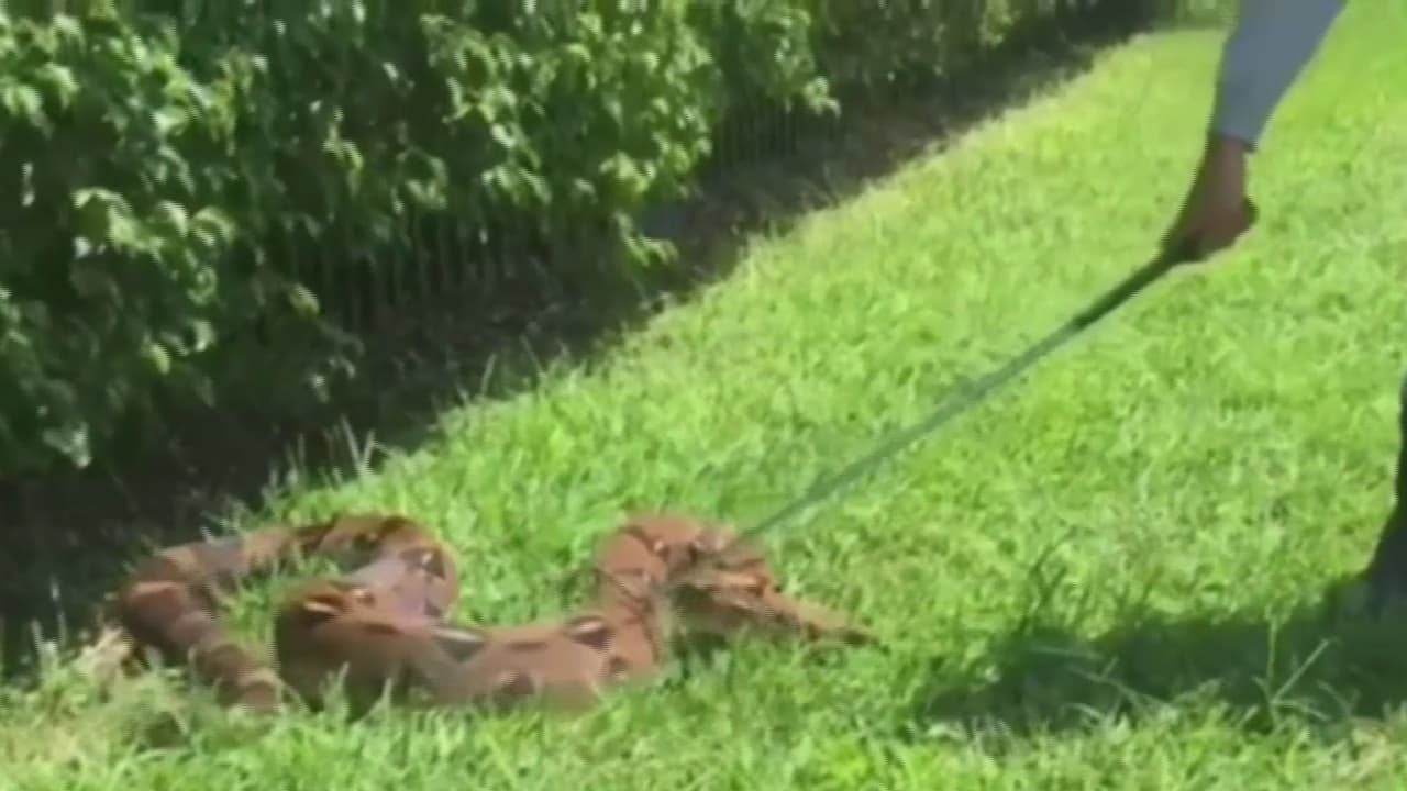 En video: El momento en el que capturan a una boa se 7 pies de largo en un vecindario