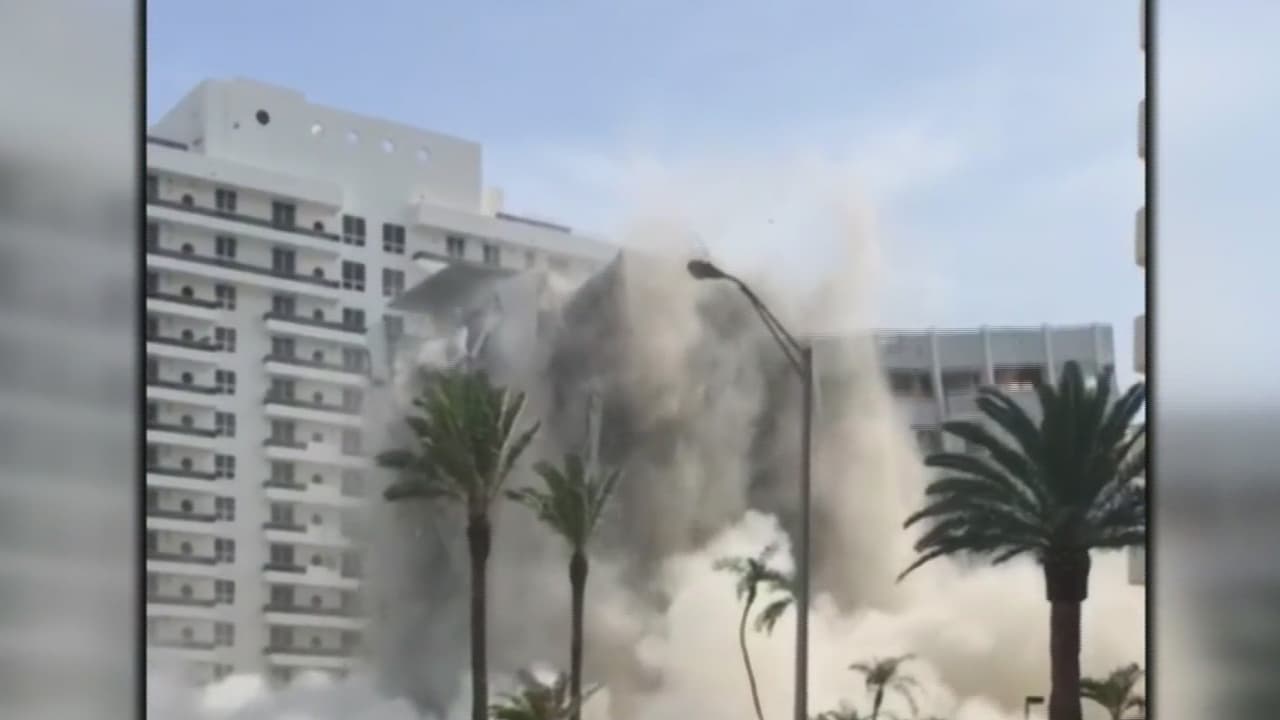 En video: El momento en el que colapsa un edificio de Miami Beach